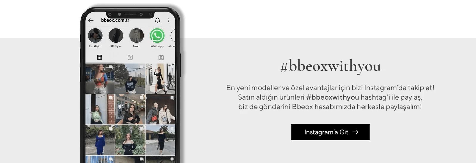 Sokak modasının ruhuna ayak uydurmak ve şıklık yarışında yerinizi almak için uzun arayışlara girmek zorunda değilsiniz. Özgüvenli bir duruş yansıtmanızı amaçlayan Bbeox modellerinde imajınızdan ödün vermeyeceğiniz özgün tınılar mevcut. Güçlü ve enerjik bir kadın imajı için aradığınız baskılı, crop kesimli, dökümlü, bağcıklı, cepli, bol paçalı modeller Bbeox koleksiyonunda boy gösteriyor